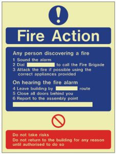Fire Action Notices Signs are designed to tell building occupants what to do in the event of a fire. They give various instructions including where the closest assembly point is & how to raise the alarm.