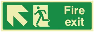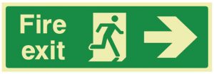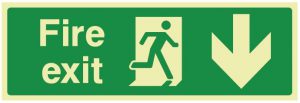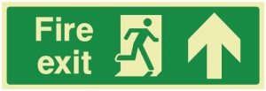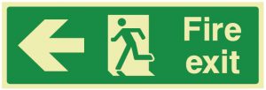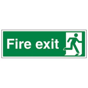 Directional arrows or a running figure accompany the word “fire exit” which will direct people safely off the premises.