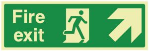 Directional arrows or a running figure accompany the word “fire exit” which will direct people safely off the premises.